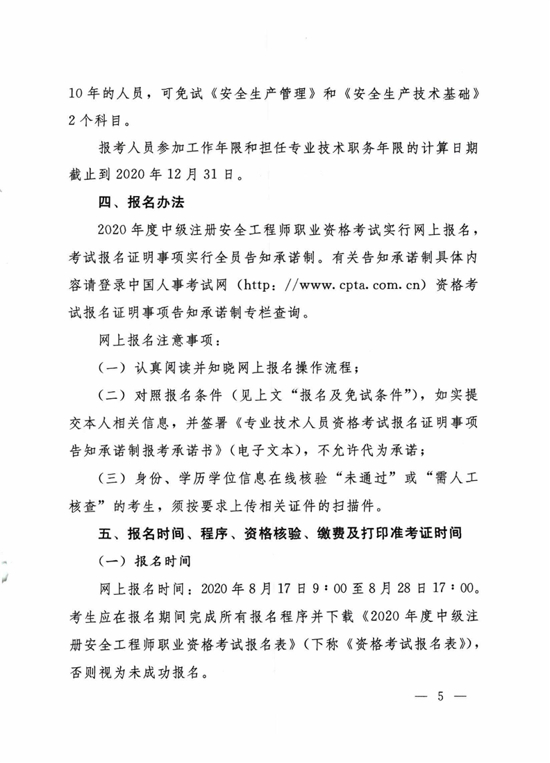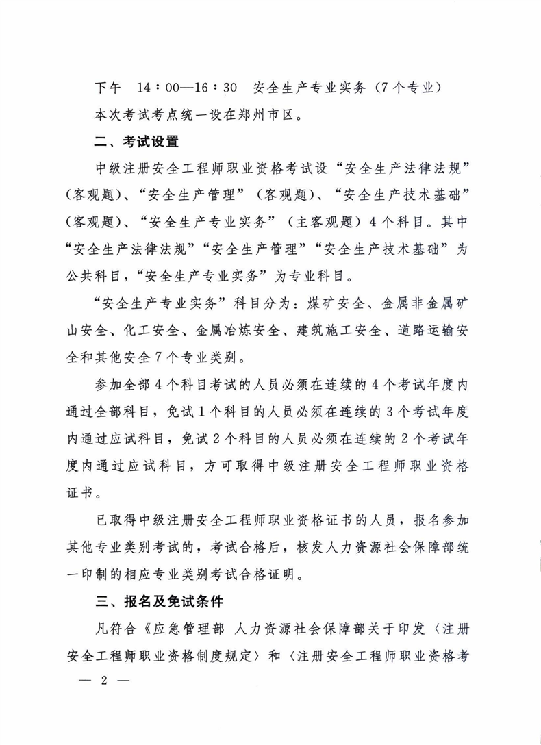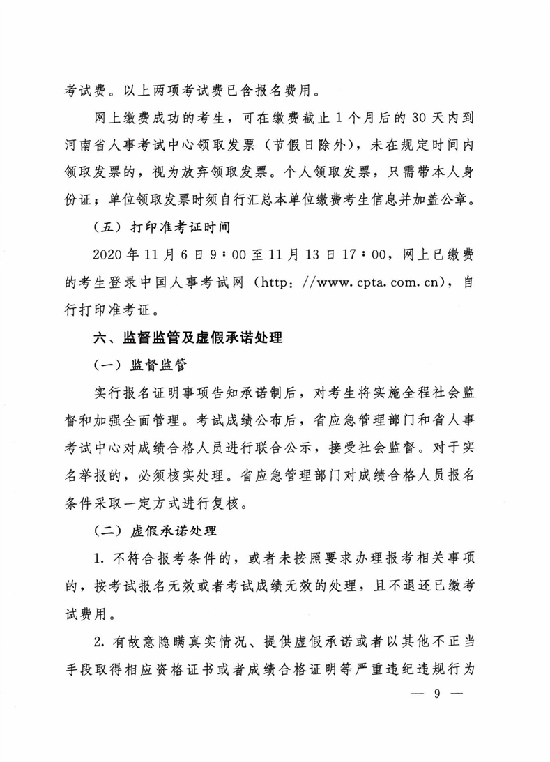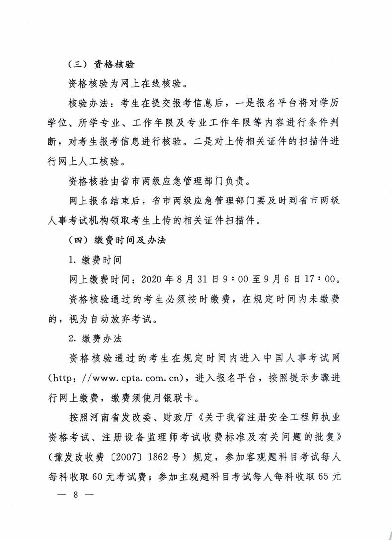 河南省人力資源和社會保障廳 河南省應急管理廳 關于2020年度中級注冊安全工程師職業資格 考試考務工作的通知
