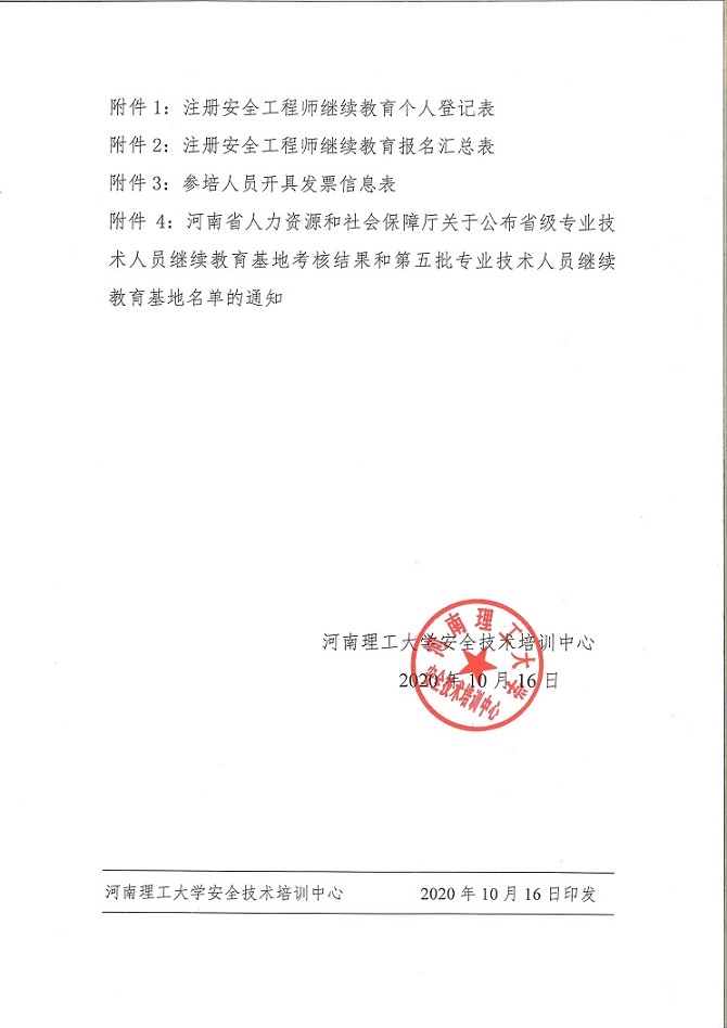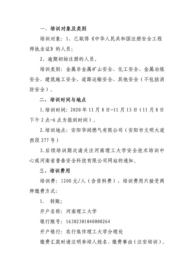 關于舉辦第六期注冊安全工程師繼續教育 培訓班的通知