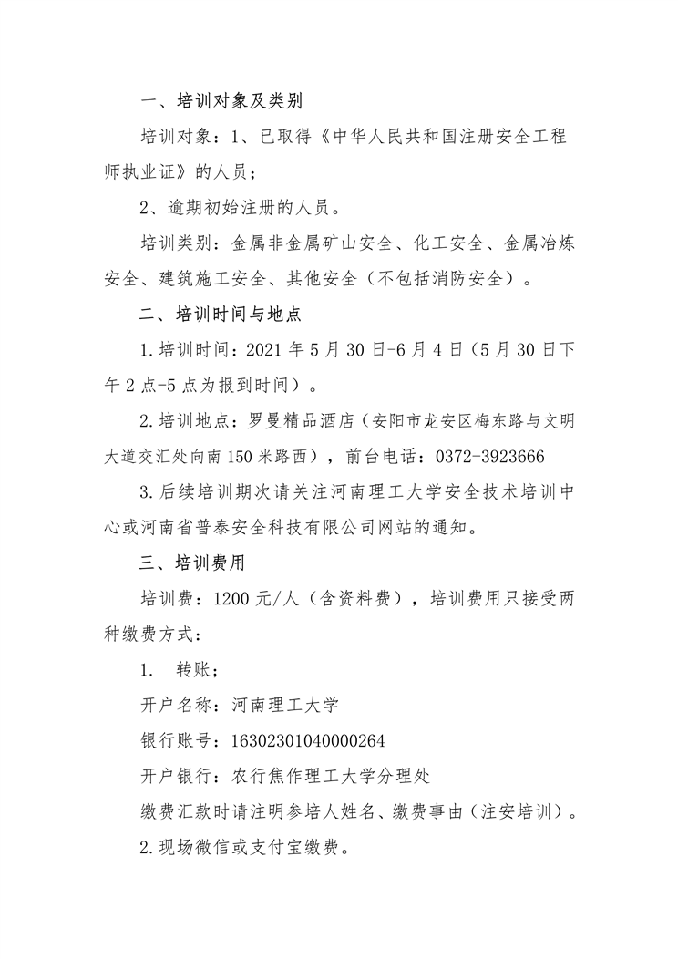 關于舉辦第六期注冊安全工程師繼續教育培訓班的通知