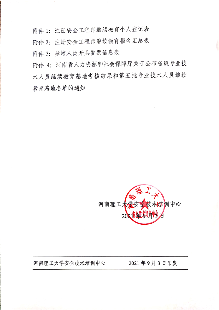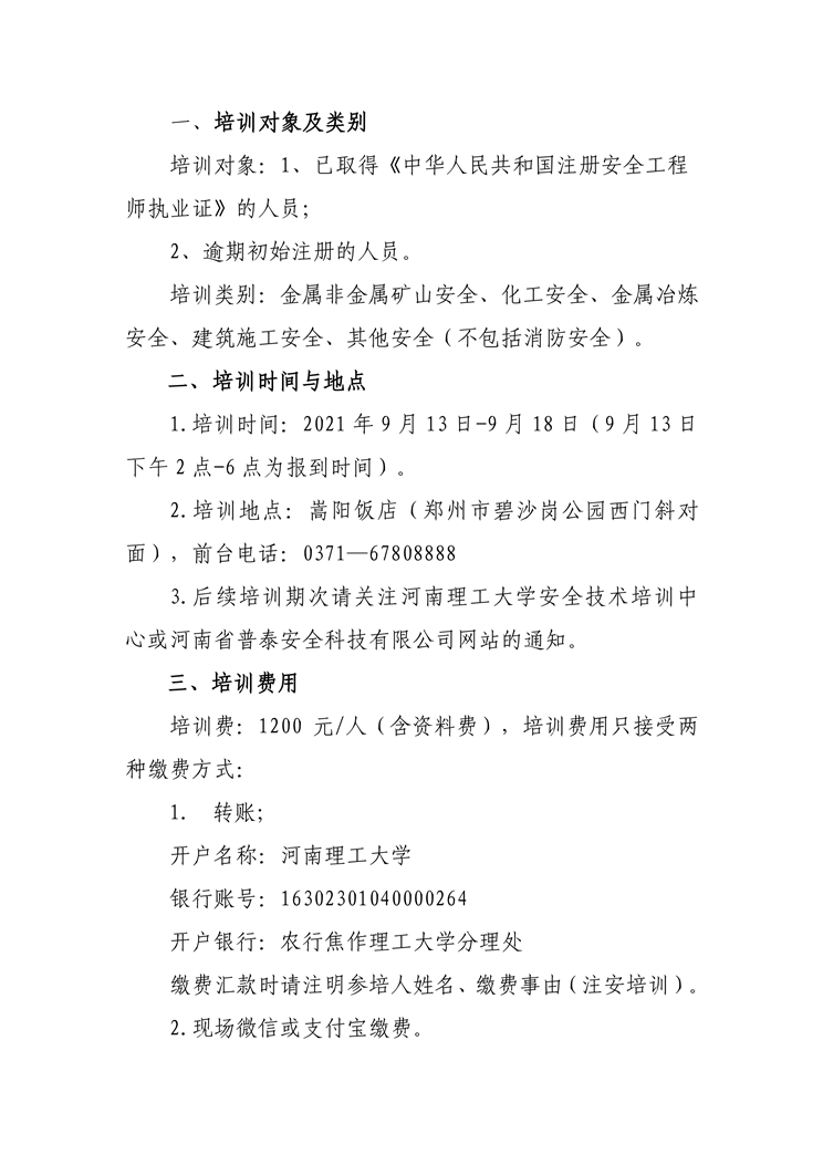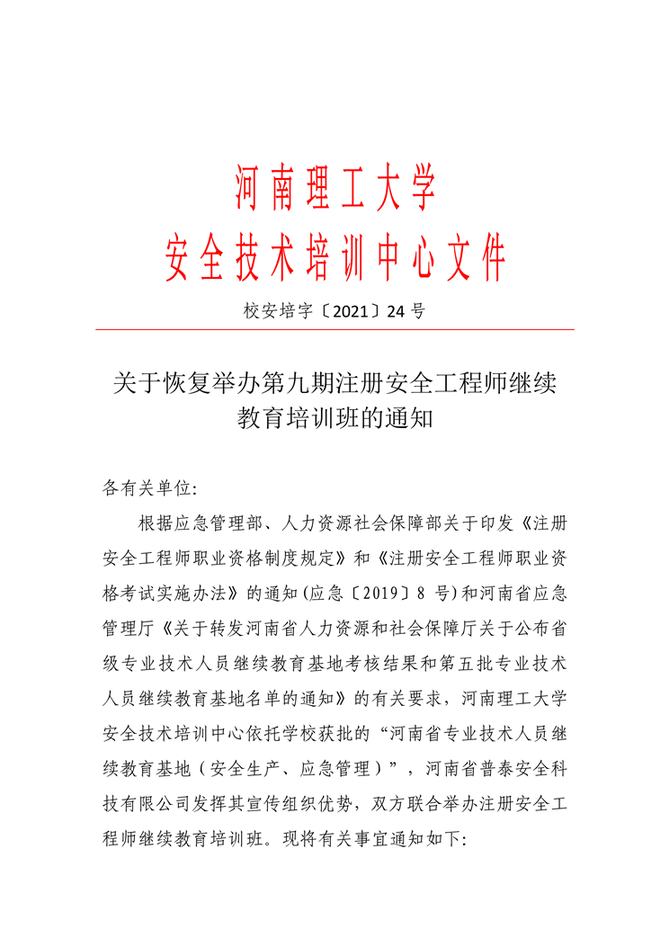 關(guān)于恢復(fù)舉辦第九期注冊(cè)安全工程師繼續(xù)教育培訓(xùn)班的通知