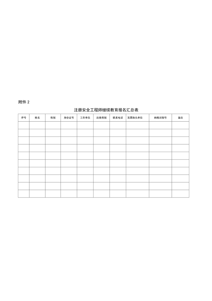 附件2:注冊(cè)安全工程師繼續(xù)教育報(bào)名匯總表