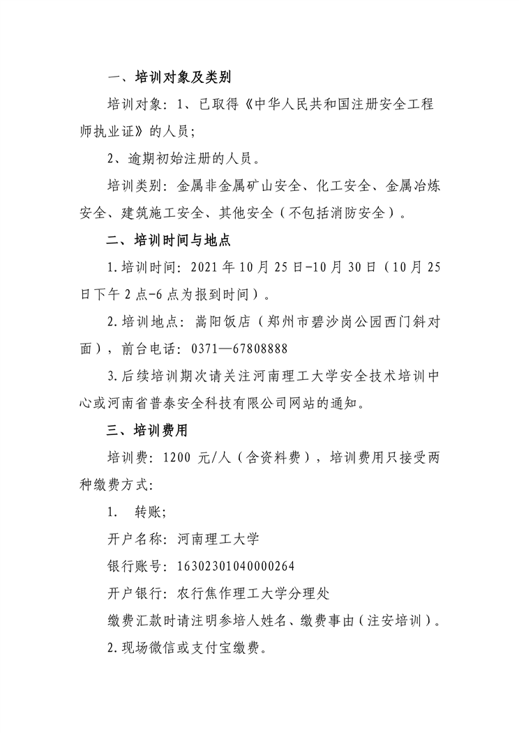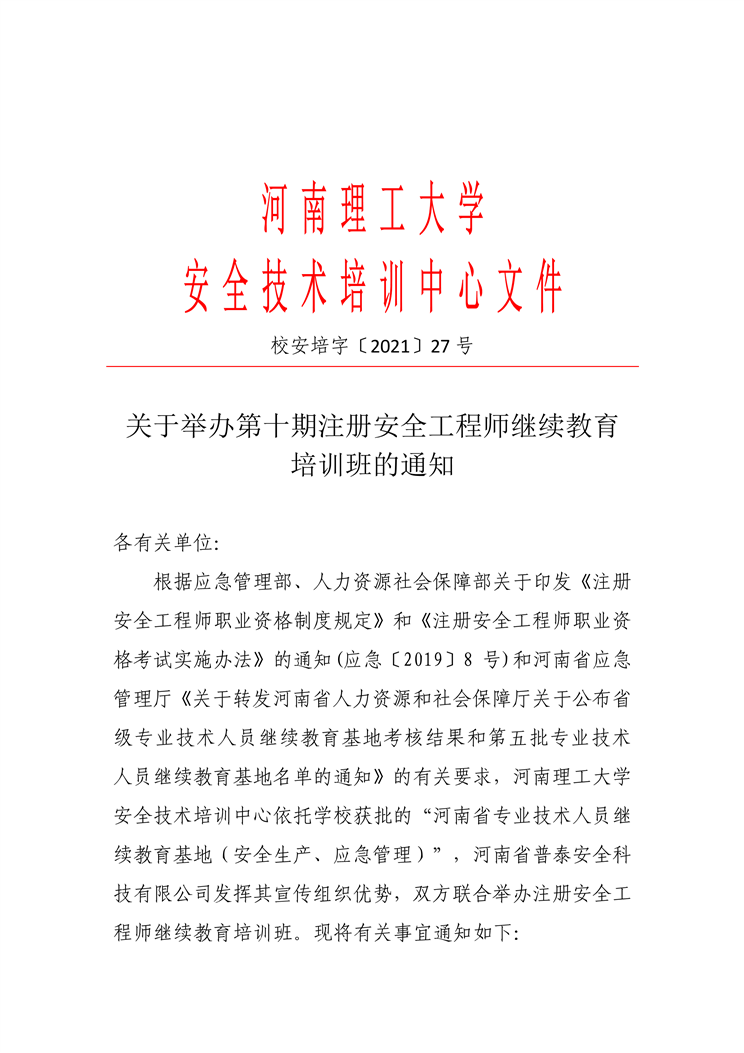 關(guān)于舉辦第十期注冊安全工程師繼續(xù)教育培訓(xùn)班的通知
