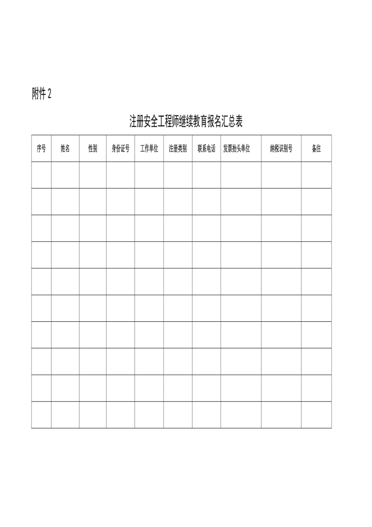 附件2:注冊(cè)安全工程師繼續(xù)教育報(bào)名匯總表