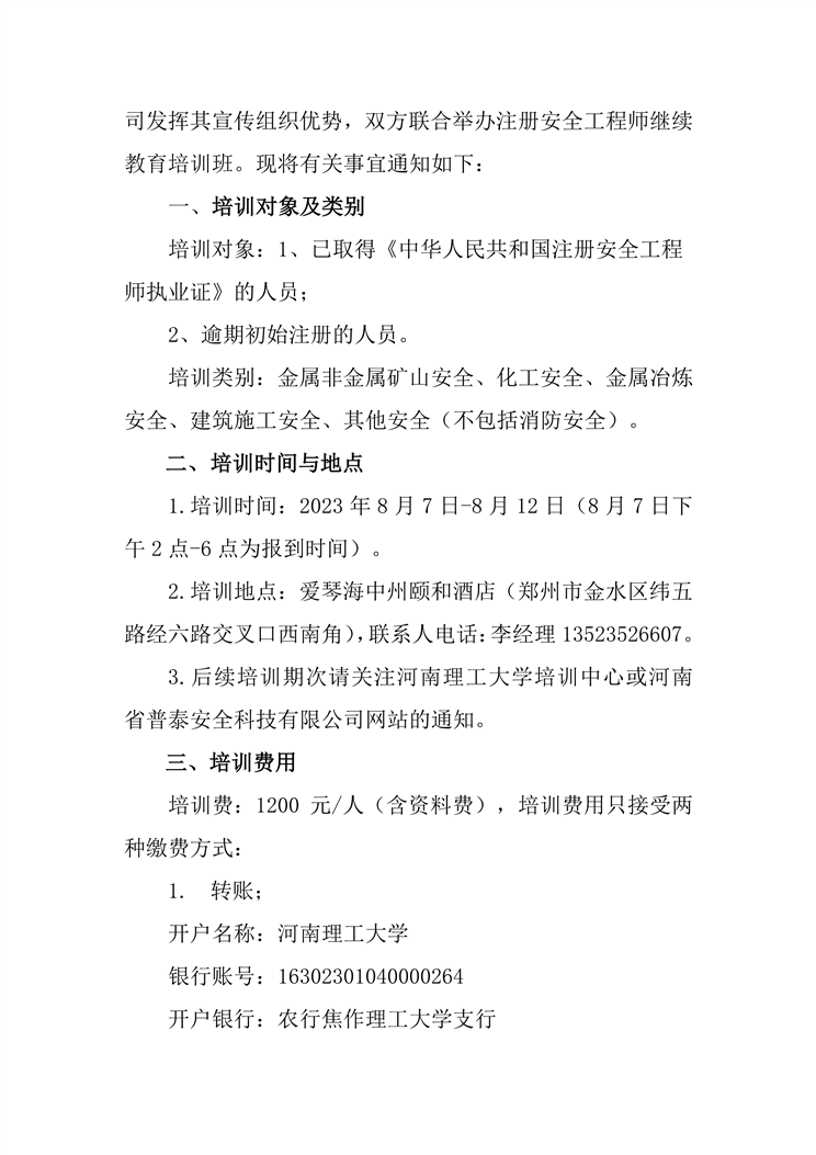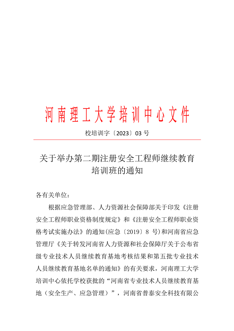 關于舉辦第二期注冊安全工程師繼續教育培訓班的通知