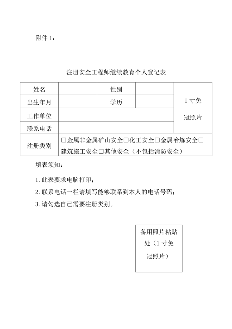 附件1:注冊安全工程師繼續教育個人登記表