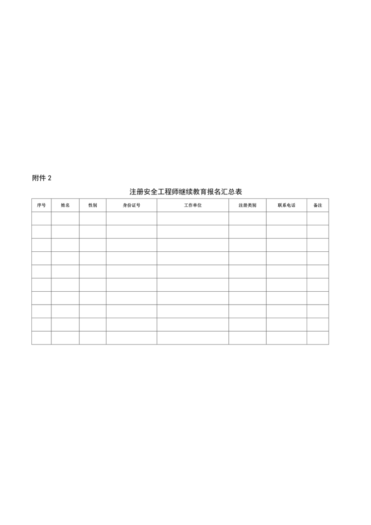 附件2:注冊安全工程師繼續教育報名匯總表