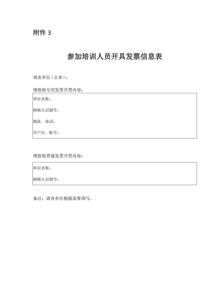 附件3:參加培訓人員開具發票信息表