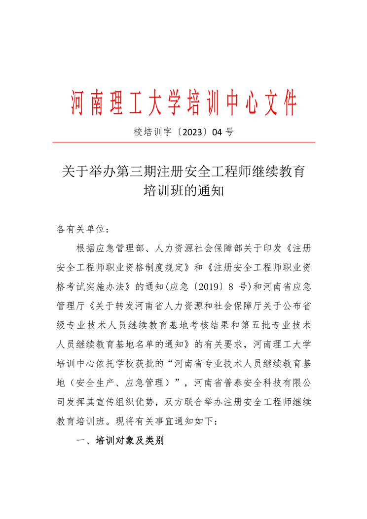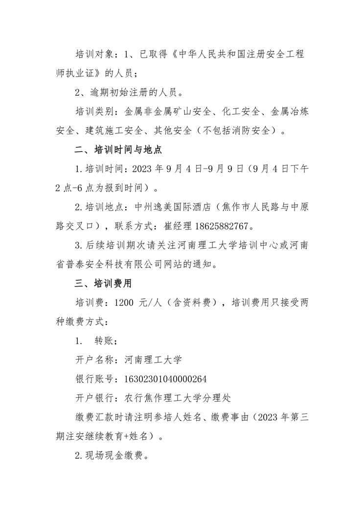 關于舉辦第三期注冊安全工程師繼續教育培訓班的通知