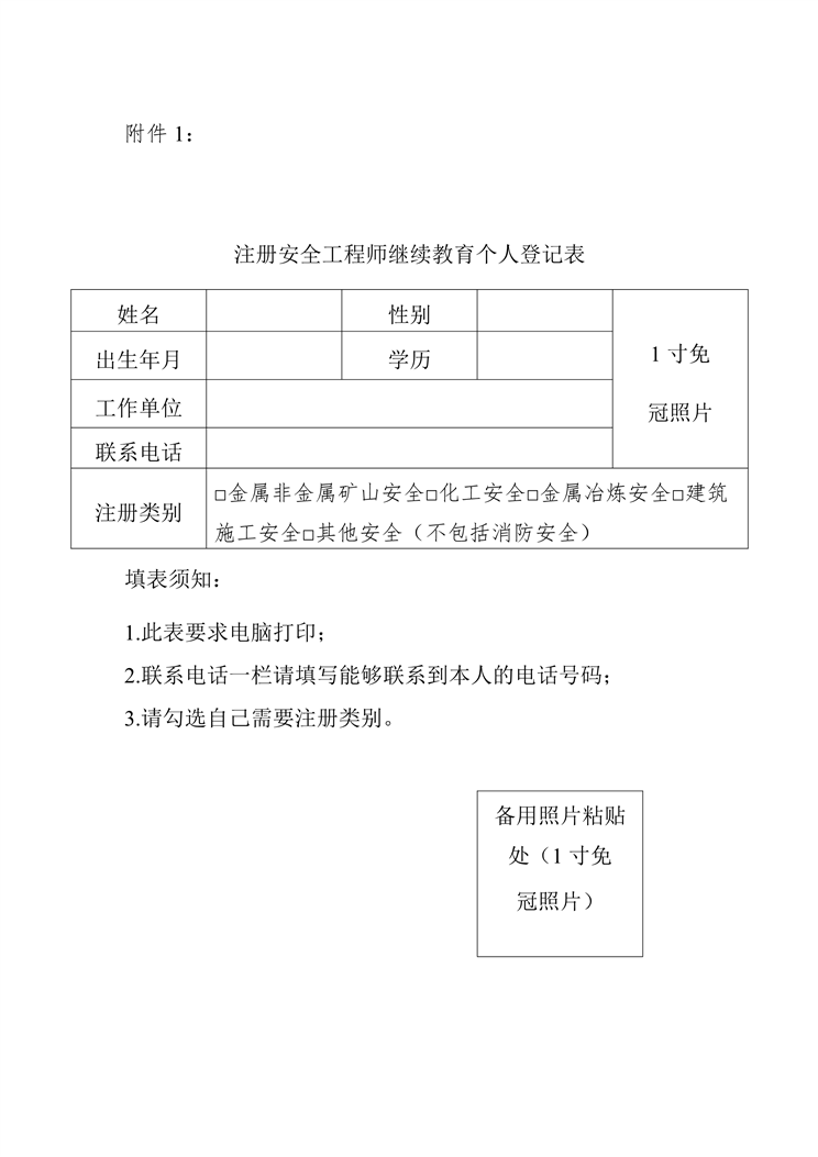 附件1:注冊安全工程師繼續教育個人登記表