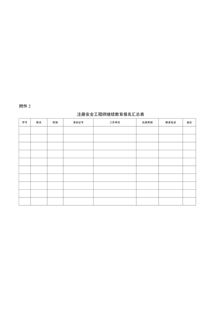 附件2:注冊安全工程師繼續教育報名匯總表