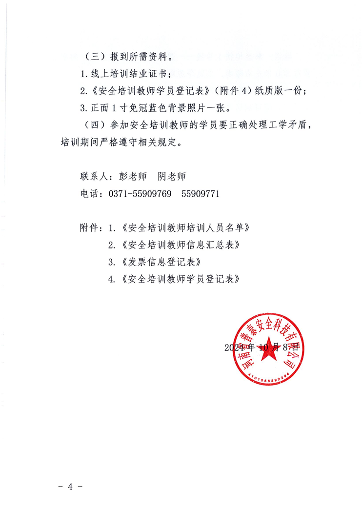 附件1安全培訓(xùn)教師培訓(xùn)人員名單(第五、六期) 附件2安全培訓(xùn)教師信息匯總表 附件3發(fā)票信息登記表 附件4河南省安全培訓(xùn)教師學(xué)員登記表